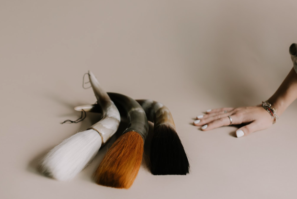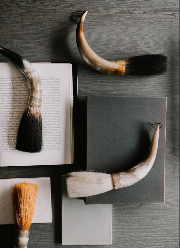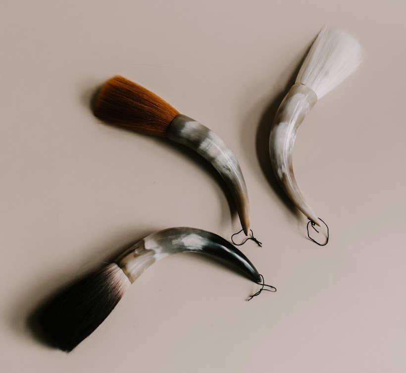 BROCHA DE CUERNO DE TORO CON PELO, PROVENIENTE DE ÁFRICA