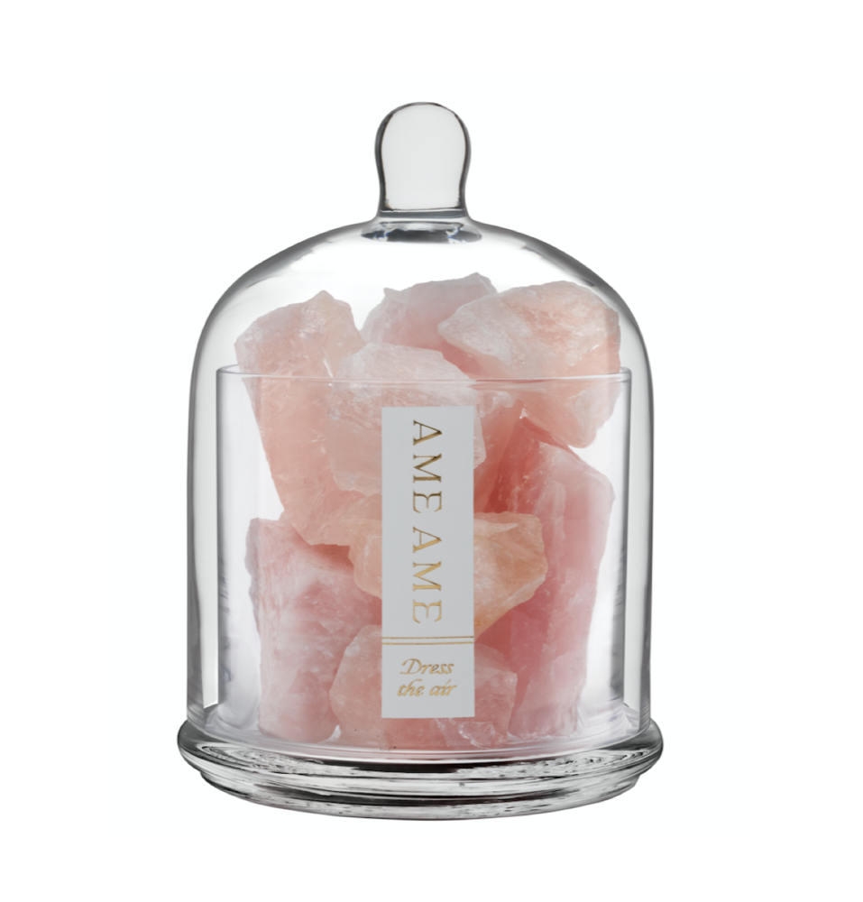 CAPELO AROMÁTICO GRANDE DE CRISTAL TRANSPARENTE DE 12.4 CM DE DIAMETRO X 17 CM DE ALTO, CON 1KG APROX. DE CUARZO ROSA Y UN GOTERO CON 30 ML DE ACEITE ESENCIAL. LIBRE DE QUÍMICOS Y PARABENOS.