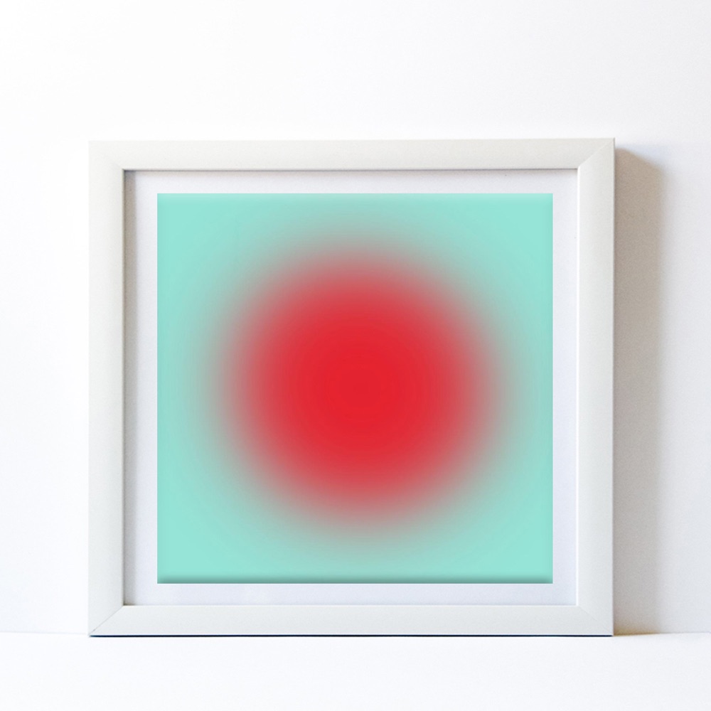 CUADRO DE TIE DYE AQUA CON ROSA ENMARCADO EN COLOR BLANCO 45 X 45 CM.