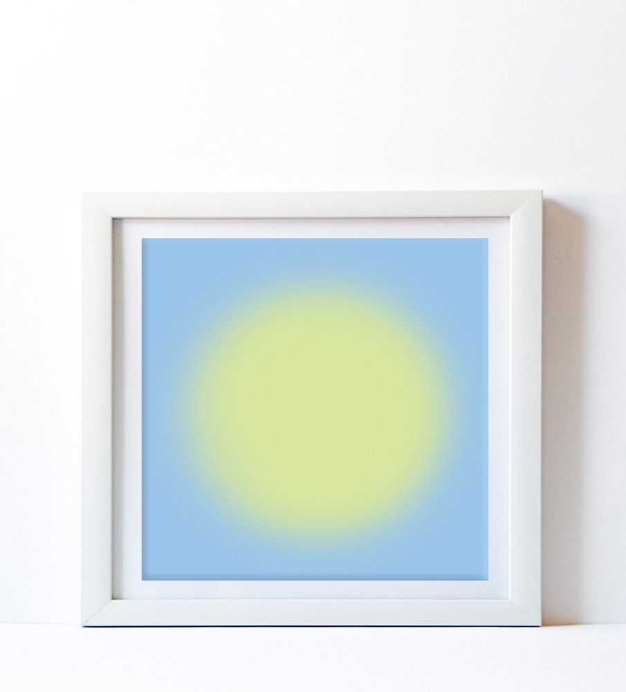 CUADRO DE TIE DYE AZUL CLARO CON AMARILLO