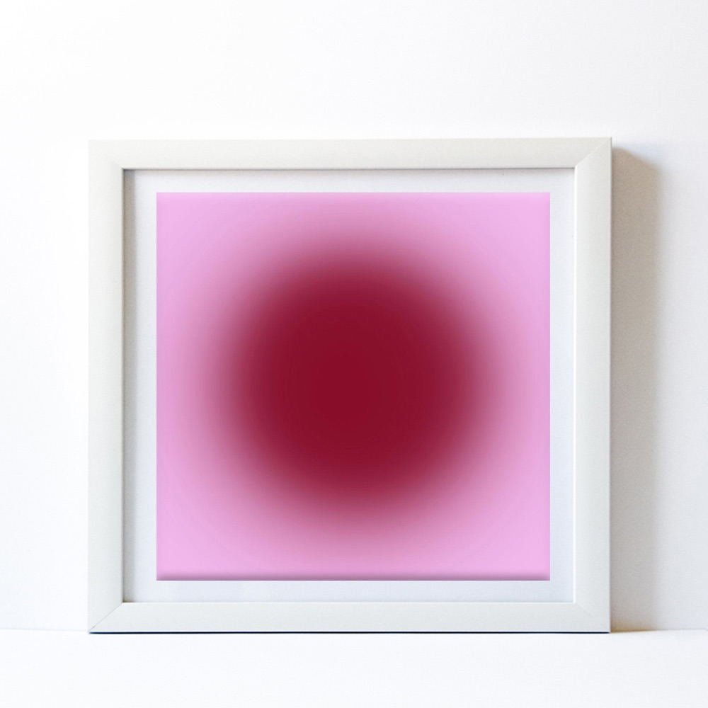 CUADRO DE TIE DYE ROSA CON VINO ENMARCADO EN COLOR BLANCO 45 X 45 CM.