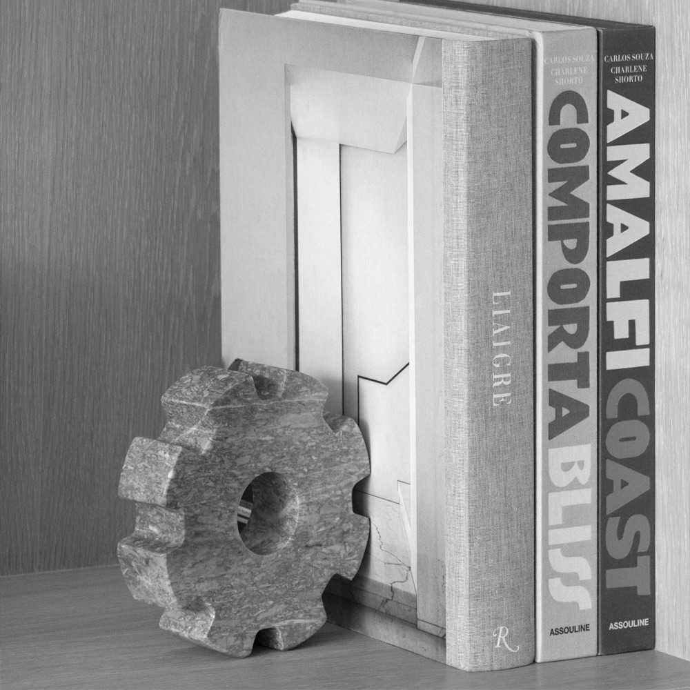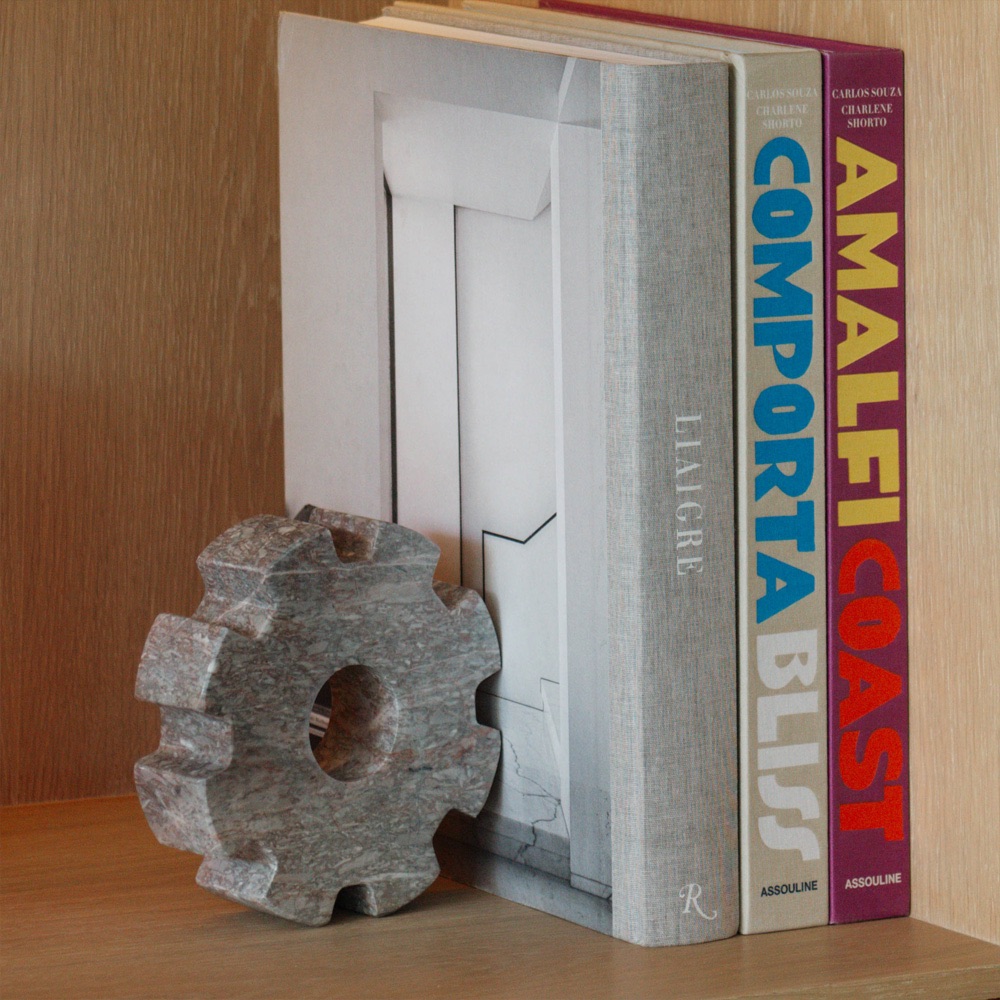 ESCULTURA DE TUERCA EN MÁRMOL GRIS TEPEACA CON ACABADO MATE DE 15CM.