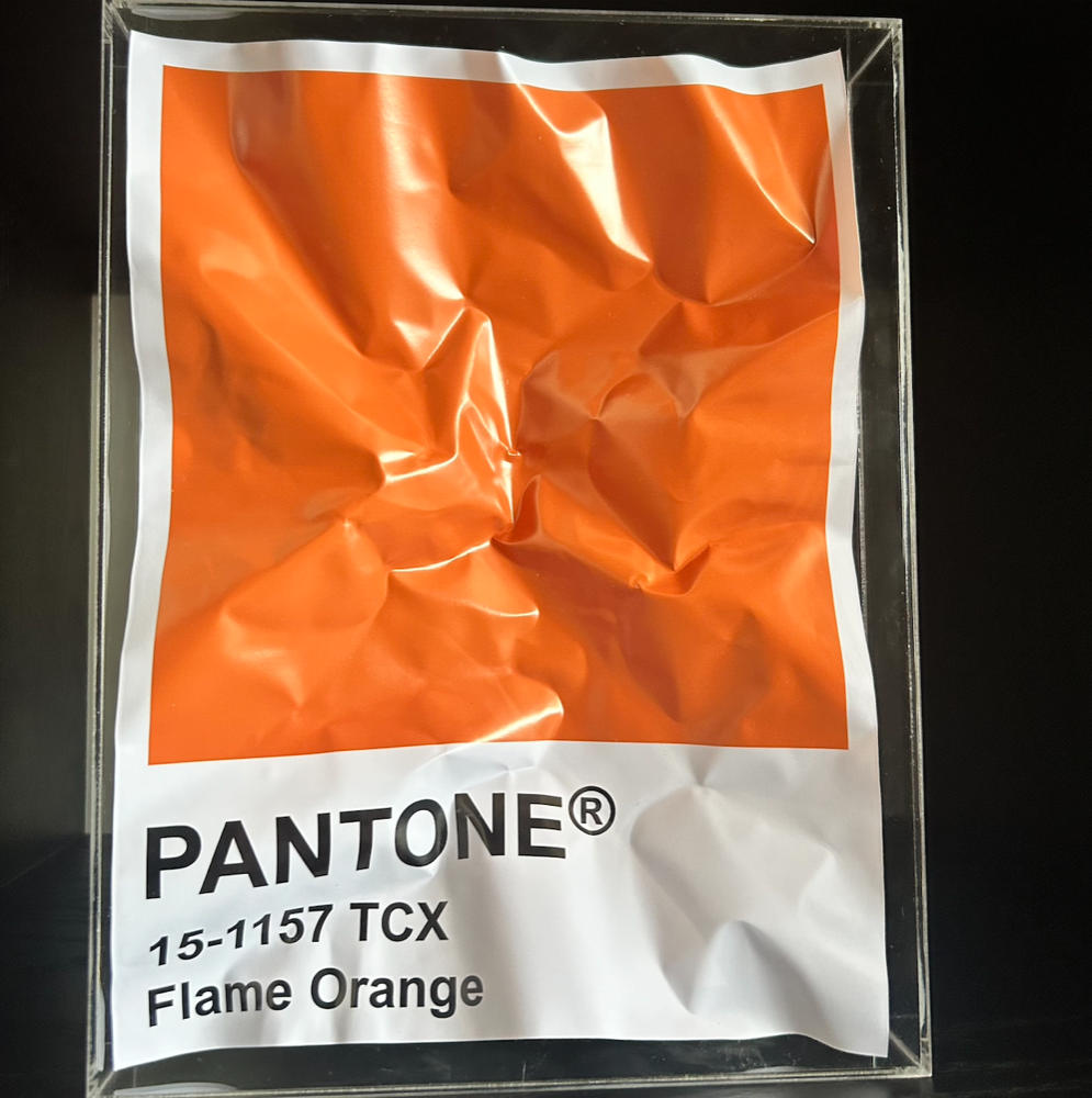 PANTONE FLAME ORANGE METÁLICO EN CAJA DE ACRÍLICO