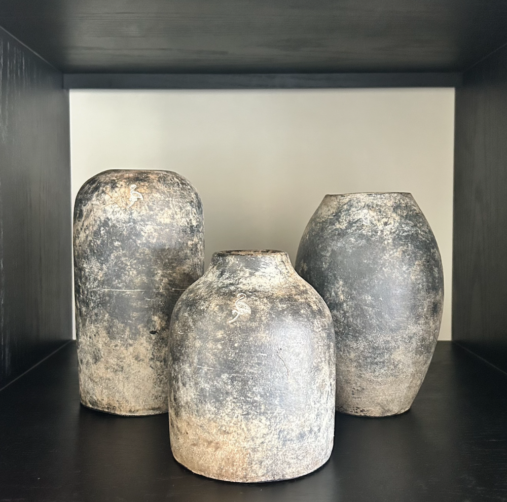 SET DE 3 JARRONES CEREZA DE 8 X 20, 17 X 22 Y 15 X 25 CM NEGRO